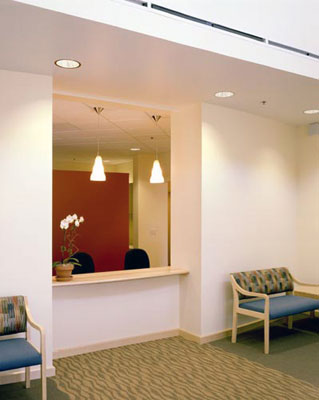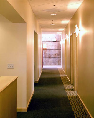 The corridor system provides a clear separation between patient and caregiver areas. This enhances the staff and visitor feeling of well-being and comfort. The clarity of the circulation system keeps patients at ease as they move through the building. A separate entrance is provided for non-ambulatory patients who are transported to the building for treatment via ambulance.