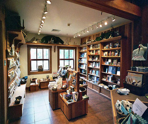 Flexible kiosk display systems on casters can be easily rearranged to display different seasonal product offerings. The layout of the fixtures flows out into the exhibit hall to draw visitors into the store. The original award-winning building recalls the traditional building forms of the agricultural uses in the area. The exterior of the building was altered to provide more windows to admit light into the bookstore and offices which brightened the interior of the entire visitor center.