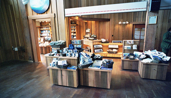 This project created a new environmental education store inside the Bear Valley Visitor Center, originally designed by Bull Volkman Stockwell. The goal of this project was to blend the architecture of the new store seamlessly with the existing interpretive and Visitor Information Center. Lighting is designed to direct lights at selected displays and to use general illumination and day light to draw visitors in toward the products.