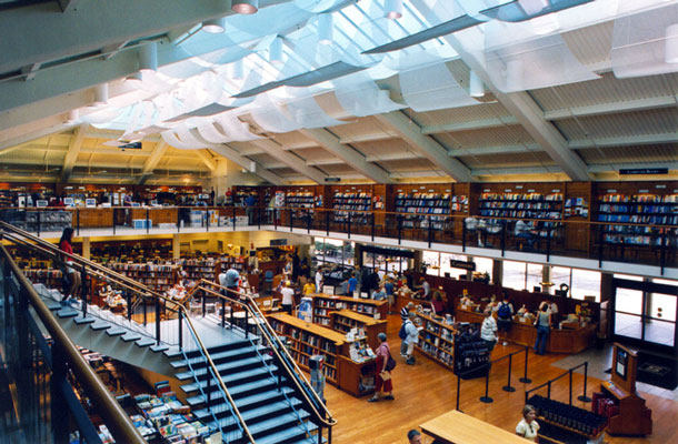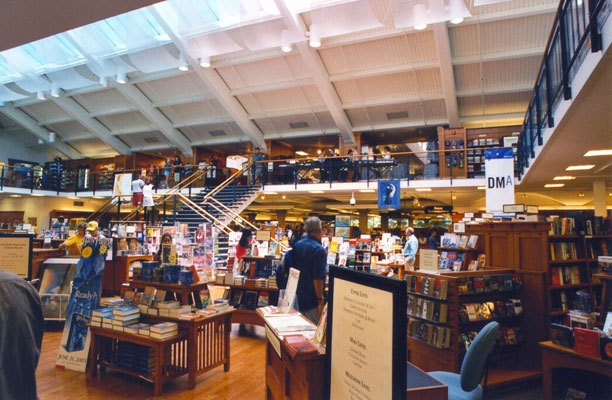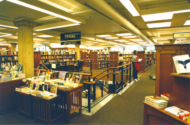 This interior renovation of the Stanford University Bookstore revised the layout of portions of all four floors. The display areas received new casework, the cafe and kitchen were expanded, a lounge with fireplace was created and the cash wrap area was reconfigured. The project also included renovation of restrooms, new flooring, lighting and network support infrastructure.